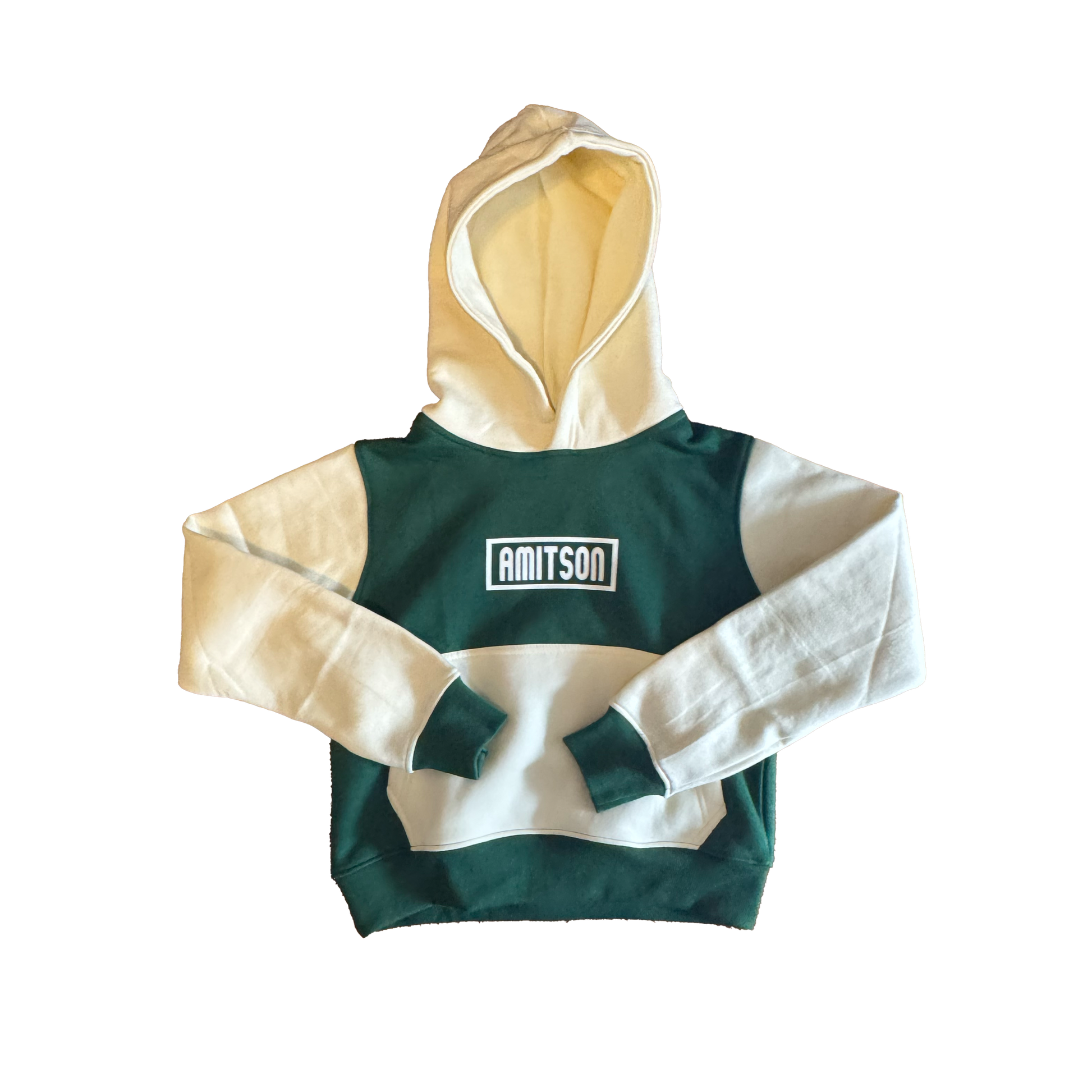 Details: Female fit - Cropped hoodie + joggers included (sold as a set) - Heavyweight cotton fleece - Contrast paneling - Ribbed cuffs and waistband for fit and comfort - Signature Amitson logo front and bold graphic back